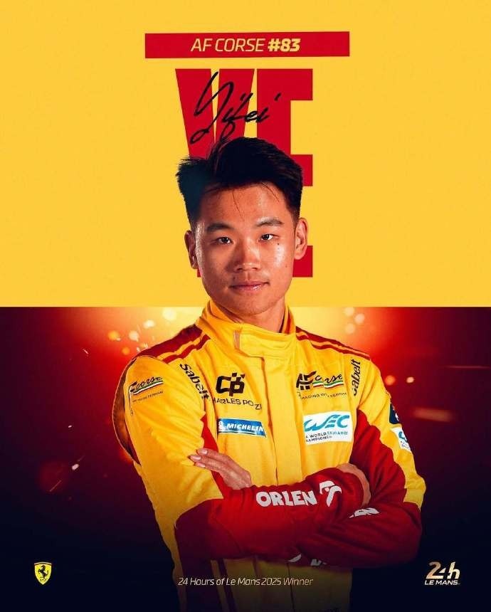 直播吧6月18日讯 2025世界耐力锦标赛勒芒24小时耐力赛,法拉利AF Corse 83号车组夺得全场冠军,叶一飞成为首个夺得该赛事冠军的中国车手。
